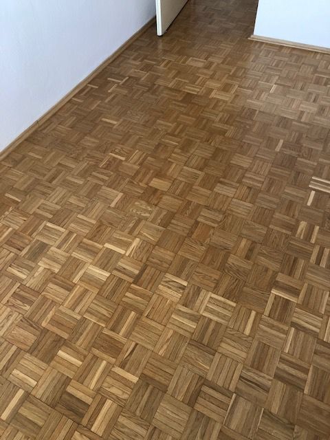 | Stan podłogi - po cyklinowaniu i lakierowaniu. |