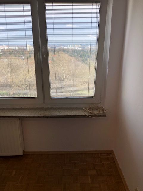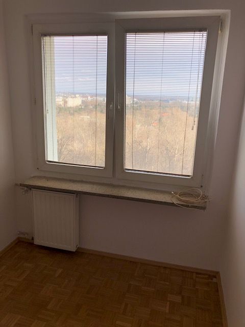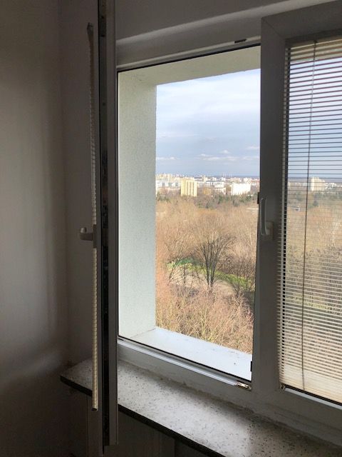 Okno - także uchylne do wewnątrz. Na parapecie leży kabel komputerowy łączący oba pokoje. Internet w kablu może być w obu pokojach. |